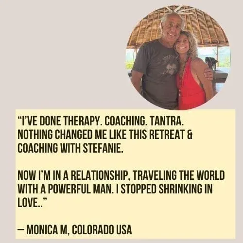 "I’ve done therapy. Coaching. T4ntra. Nothing changed me like this retreat & coaching with Stefanie. Now, I’m in a relationship, traveling the world with a powerful man. I stopped shrinking in love..”